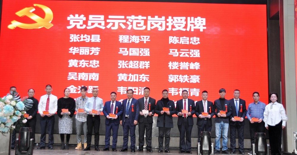 在甘婺商党工委书记钟国庆、党办主任韩钟芸、党委委员张煊、斯亚珍授牌党员示范岗张均县、程海平、陈启忠、华丽芳、马国强、马云强、黄东忠、张超群、张煊、楼誉峰、吴南南、黄加东、郭轶豪、金光跃、韦阳清、韦福青、张小忠、金小明(18位)