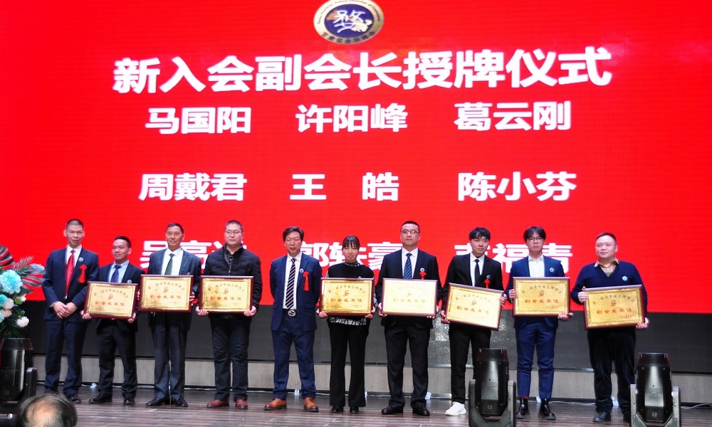 甘肃省金华商会会长常务副会长程海平、常务副会长陈启忠给新入会的马国阳、许阳峰、葛云刚、周戴君、王皓、陈小芬、吴高进、郭轶豪、韦福青等9位副会长授牌