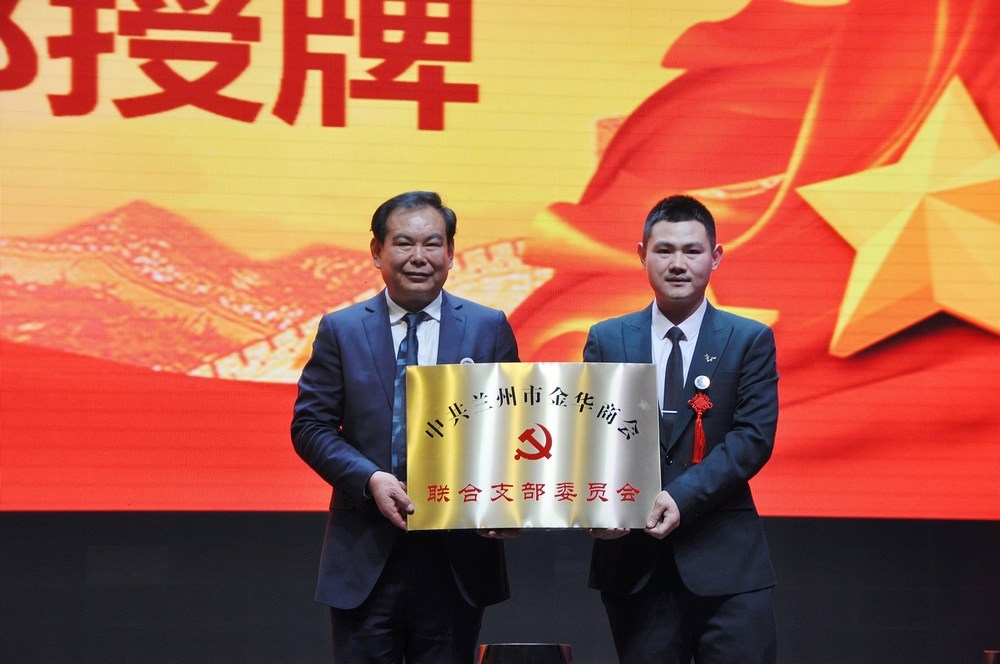 在甘婺商党工委书记钟国庆为东阳兰州市场党支部、甘肃省金华商会党支部颁发优秀党支部