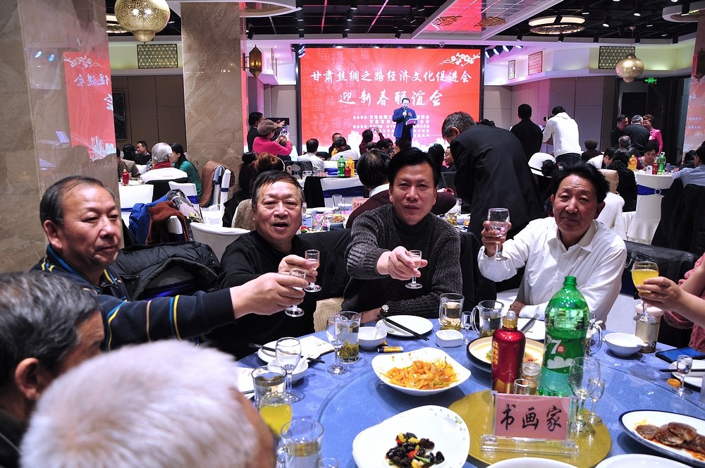 这次书画笔会交流暨迎新春联谊会的成功举办,是甘肃丝绸之路经济文化促进会强强联合、资源共享、协作共赢的具体实践!此次“丝绸之路迎新春联谊”活动,得到了甘肃省民营企业联合会及浙商集团、天下收藏艺术馆、银滩艺术团、甘肃韵文学会、甘肃博渊书画院、甘肃超迪天成文化传播有限公司、敦湖温泉会所、甘肃滨河集团等单位的热忱参与支持,充分体现了各自协作单位的资源优势及鲜明特色,实现了共赢,为未来多方携手,创造辉煌,开创了新篇章!