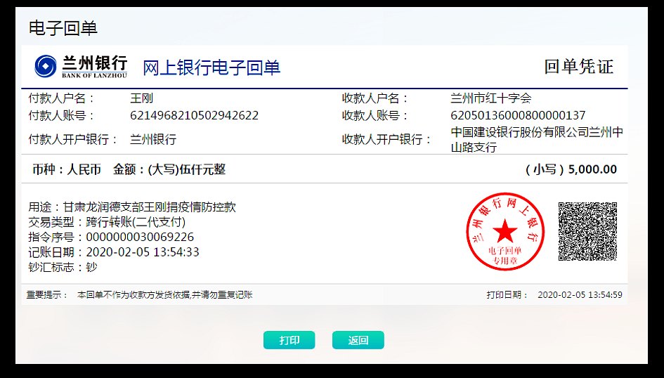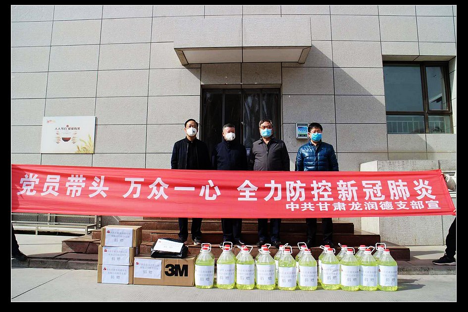 自新冠肺炎疫情在全国蔓延后,1月31日,以个人名义捐款2000元;2月4日,代表甘肃龙润德实业有限公司捐款3000元和一线值班用床100套;以一名共产党员名义向武汉市慈善总会捐款2000元;2月5日,再次向兰州市红十字会捐款5000元……在最近十几天的时间里,王刚又带着公司的几名党员和预备党员,把防疫最急需的口罩、消毒液、防护服等送到了皋兰县忠和镇政府、兰州市慈善总会、兰州市文明办、兰州市中级人民法院、兰州现代职业学院、兰州资源环境职业技术学院、兰州石化职业技术学院、榆中县沈家河小学、皋兰县忠和镇崖川村村委会。