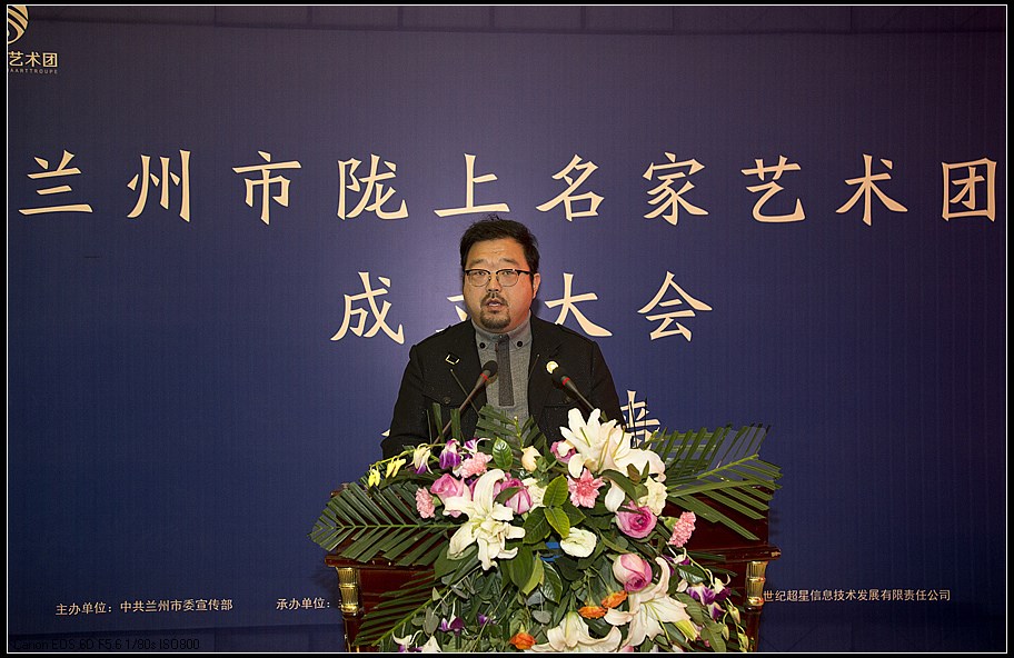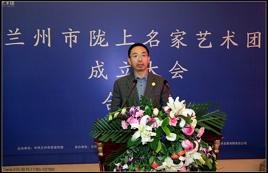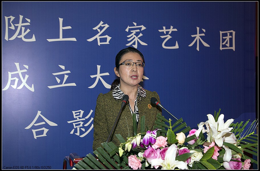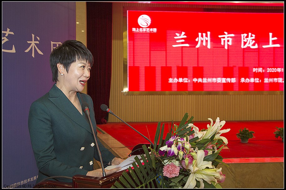 兰州市陇上名家艺术团执行团长伏辉在成立大会上致词。 贾笑云 摄