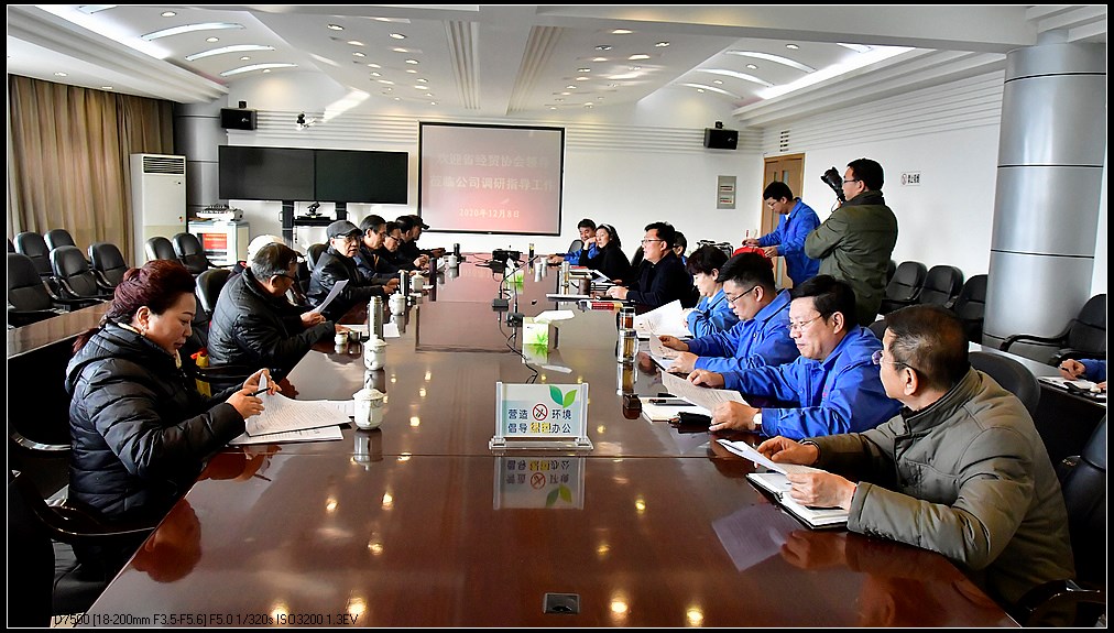 (省经贸协会考察慰问组一行认真仔细的听取企业负责人做工作汇报)