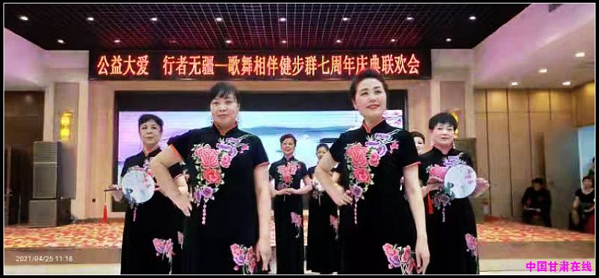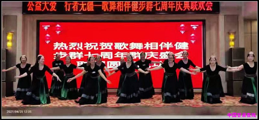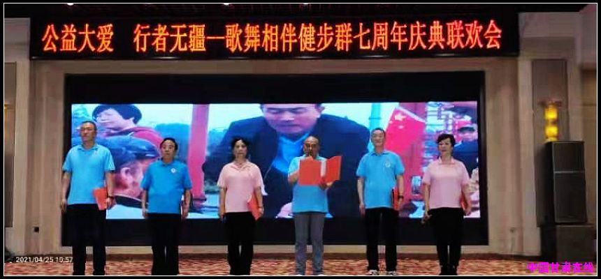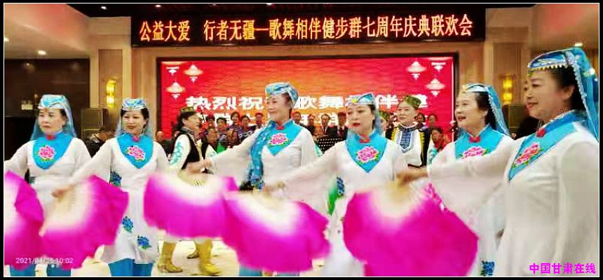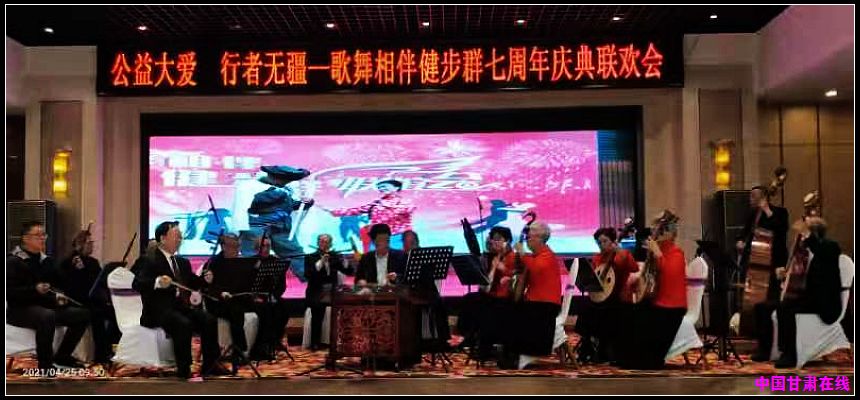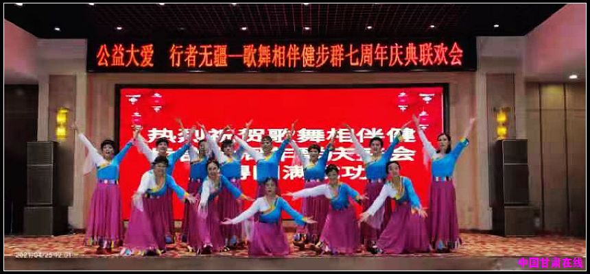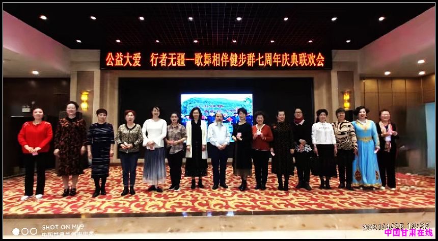 中国甘肃在线兰州讯(赵小春 王学明报道)4月25日上午,甘肃金城兰州,经历了春雨的淅淅沥沥,空气格外清新,整个城区室外的天宇,沉浸在云雾缭绕的春光妩媚里。而位于七里河金港城的万寿宫大酒店八楼宴会大厅,灯光通明,金碧辉煌,富丽堂皇,雅典高端。一个民间组织歌舞相伴徒步群公益会,将以“公益大爱,行者无疆"为主题,举行建群公益行七周年庆典联欢会,来自社会各届人士、歌舞相伴徒步群公益会成员以及旗下的19个演出团队近500多人参加了隆重的庆典,现场欢声笑语,气氛热烈。省甘肃电视台、《兰州晚报》、每日甘肃、中国甘肃在线等多家媒体,进行现场全程采访报道。