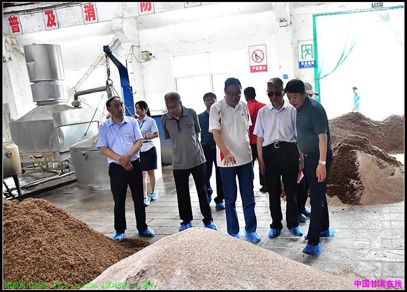 中国甘肃在线讯:2021年7月9日上午,甘肃省经贸协会指导委主席、甘肃省经贸信息中心主任、《甘肃经贸》杂志社社长王继烈;甘肃省人大常委会原常委、代表委主任、省人社厅厅长、省经贸协会副主席、《甘肃经贸》杂志社副社长王光烈;甘肃省人社厅原副厅长、甘肃行政学院原党委书记、省经贸协会副主席孔令纪;甘肃省商务厅原副厅长、省经合局局长、省经贸协会副主席张世恩;省新闻出版局原副局长、原省文化产业发展集团公司党委书记李玉政以及协会副会长李永义、协会秘书长助理任元、协会秘书处长助理丁军一行莅临甘肃红川酒业有限责任公司调研,在公司总经理张永峰和相关领导的陪同下,相继参观了红川酒业原粮库、曲库、白酒生产车间、吨坛库以及包装车间等。