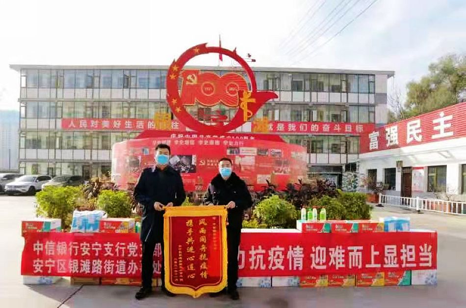 中国甘肃在线讯(兰州日报特约记者赵雨婷报道)“生命重于泰山,疫情就是命令,防控就是责任”,为深入贯彻各级政府关于新冠肺炎疫情防控的重要指示精神,在疫情防控的关键时刻,体现中信温度和中信担当,11月3日,中信银行兰州分行安宁支行党支部开展“凝心聚力抗疫情 迎难而上显担当”主题党日活动,由支部书记刘海军同志带头,为兰州市安宁区银滩路街道疫情防控奋战在第一线的工作人员赠送抗疫物资。