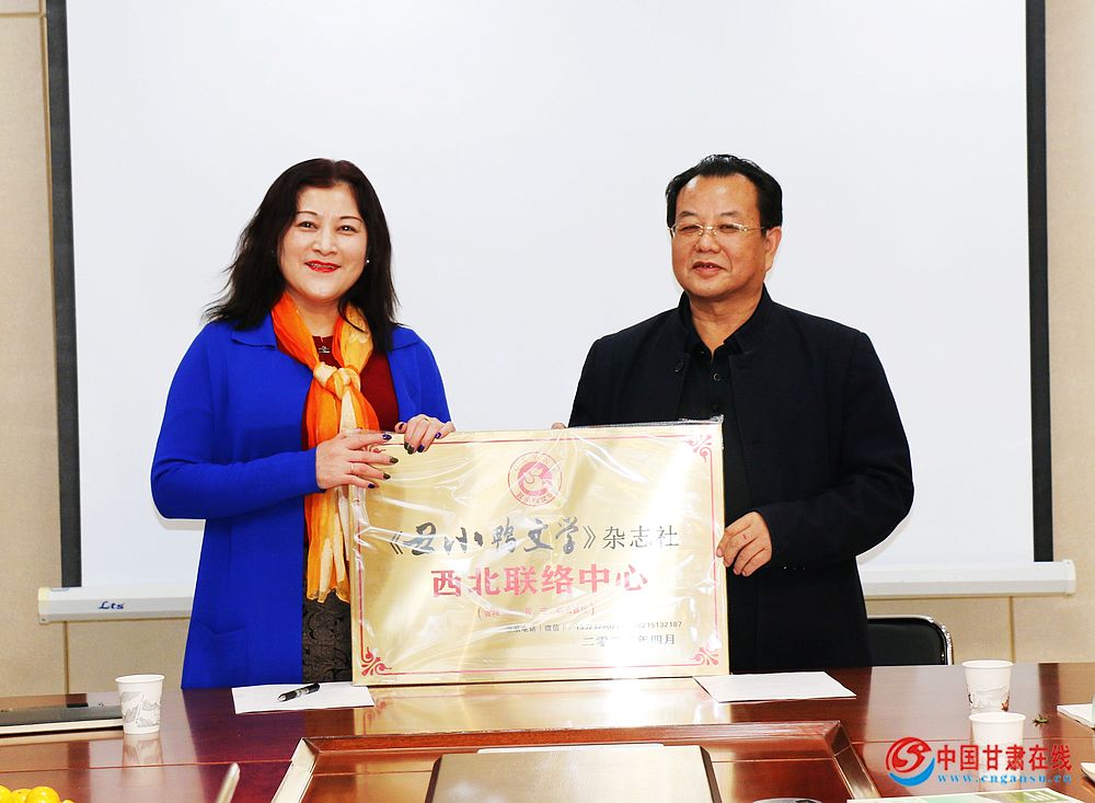 中国甘肃在线讯 4月15日下午,甘肃丝绸之路经济文化促进会与北京《丑小鸭文学》杂志社西北联络中心授牌、文化交流暨甘肃丝绸之路促进会二届四次常务理事会,在兰州中科银座大厦顺利召开。
