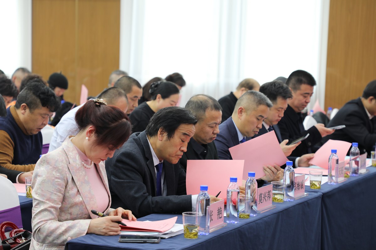 会议现场为选举产生的会长、荣誉会长、常务副会长兼秘书长、副会长、副秘书长、常务理事单位等颁发证书及牌匾,第三届理事会会长尹建敏向第四届理事会会长师富贵授旗。