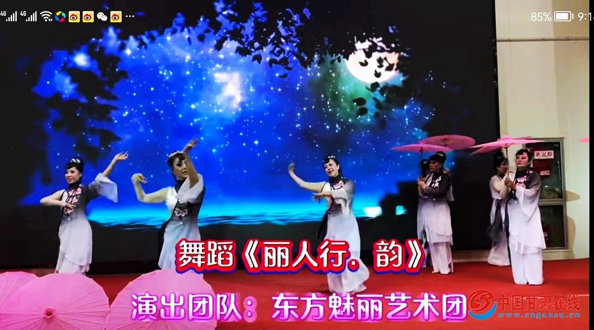 “没有共产党就没有新中国,共产党辛劳为民族,共产党他一心救中国,他给了人民解放的道路,他领导中国走向光明----” ,上午十点,演艺人员全体起立,在一曲《没有共产党就没有新中国》的大合唱中 ,拉开了文艺演出的序幕。东方魅丽艺术团的舞蹈《丽人行.韵》,在月光下翩翩起舞,月色华辉,丽人翩跹,让人们对十五的圆月充满了美好的遐想…….英姿旗韵艺术团的折扇秀《最美中国》、折扇秀《花舞人间》、公共网络岁月之声艺术团的电吹管三重奏《巴比伦河》、非洲鼓《打起手鼓唱起歌》、百花齐放艺术团的旗袍走秀《洞仙尘烟》、旗袍秀《中国旗袍》、鱼跃龙门艺术团的西部风情舞蹈《遇到了雪山》、飒舞君团舞蹈队的藏舞《次真拉姆》、金翅舞蹈《菜啦》、西固皓月长歌舞蹈队的舞蹈《梅花赋》、培黎合唱团的男女小合唱《绣红旗》、《洪湖水浪打浪》、鸿雁艺术团的二声部合唱《洪湖水浪打浪》、男女声二重唱《甘肃老家》、舞悦飞扬艺术团的《草原花月夜》、兰州追梦艺术团的时装秀《乐龄大女孩》、靖河韵艺术团的非遗服饰秀《中国节奏》、铿锵玫瑰舞蹈队的黄梅戏《十五的月亮》、华美模特艺术团的旗袍秀《如画》、伞秀《水乡温柔》、东方魅丽艺术团古典舞《千年之约》、西固康花舞蹈队藏族舞《吉祥》…….众多精致的紧贴“中秋节”主题、讴歌祖国、热爱党的文艺节目演出正能量满满,诠释了人们对中秋团圆节日的美好期盼与祝愿。众多内容丰富,演艺精彩的节目,将会场的气氛推入了高涨,为首届丝绸之路“春晚”节目选拔暨迎“中秋”文艺汇演划上了圆满的句号!
