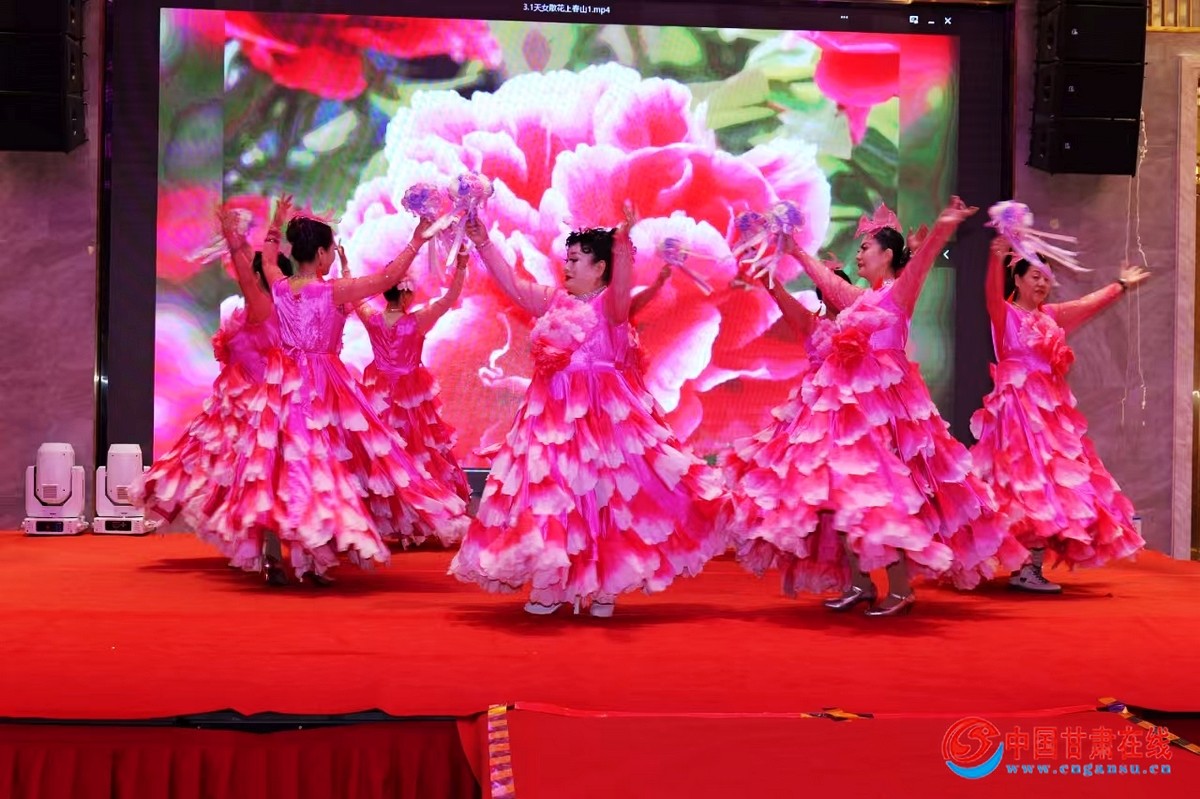 上午九点半,在《我和我的祖国》的音乐中,300多名演艺人员手拿小红旗,走过T台,一曲《拜新年》的大合唱,拉开了文艺演出的序幕。陇原情太平鼓韵艺术团的庆典锣鼓《鼓舞絲绸之路》,锣鼓喧天、节奏感振撼,展示了盛世欢歌,礼赞祖国的欢腾场景……兰州树荣艺术团的开场舞《万事如意》,将金典与现代完美结合,歌曲舞蹈洋溢幸福和喜悦的欢乐,百花齐放艺术团、鱼跃龙门艺术团、二十里铺锅庄队、秦丝韵芳华艺术团、春华秋实旗韵艺术团、佳云旗袍队、大树飞天舞蹈队、卡卡舞蹈队、华美锦瑟乐退族、快乐演唱团、欣悦梦之舞团队、兰州春天飞燕水兵舞团、七里河区开心艺术团、英姿舞蹈健身团、皓月长歌舞蹈队、兰西铁苑老年艺术团、兰州雅韵艺术团、龚家湾新社区姐妹花舞蹈队、舞媚娘东方舞团队、西固柔乐艺术团、欢乐姐妹舞蹈队、七里河陇之声艺术团、乐圣艺术团的舞蹈、旗袍秀、汉舞伦巴、庆典锣鼓、手绢神韵组合、柔力球、葫芦丝表演、独唱、独奏等众多美轮美奂、精彩卓越、歌颂祖国的文艺节目表达了人们对新年的美好祝福。众多艺术团队演艺的优秀节目,形式多样,内容丰富。现场热闹非凡,观众热情高涨,掌声雷动,舞台上灯光熣灿,演员们身着华丽的服装,随着音乐的节奏,翩翩起舞,赢得了现场阵阵掌声,优美的舞蹈,欢快的旋律,精彩的表演,洋溢着时尚与艺术的完美融合,给观众带来了一场精彩的视觉盛宴,将会场的气氛推入了高涨,迎新年文艺联欢会在欢乐的气氛中圆满成功,为新年的到来增添了绚丽的色彩!