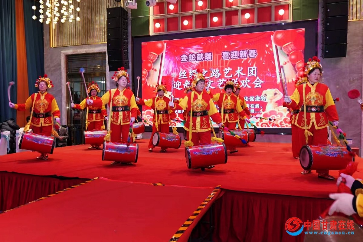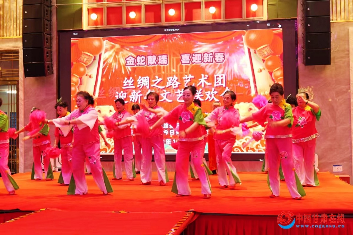 中国甘肃在线兰州讯 金龙飞舞呈吉祥,银蛇纳福迎新年。12月26日, 由甘肃丝绸之路经济文化促进会举办的丝绸之路迎新年文艺汇演活动在兰州鹏厨御华园酒店举行,有30个艺术团队300多名演艺人员参加了38个文艺节目的演出。