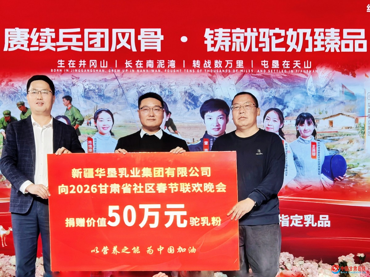 随后,新疆华垦乳业集团及丝路驼宝执行总裁张喜峰宣布正式成为2026甘肃省社区春节联欢晚会战略合作伙伴,发布暖心赞助宣言。作为新疆生产建设兵团属地企业,华垦乳业始终秉持“取之于社会,回馈于社会”的理念,发扬兵团精神,深耕全产业链建设,打造覆盖全年龄段的高品质营养产品矩阵,在践行企业社会责任的道路上持续发力。此次牵手社区春晚,既是华垦乳业助力基层文化建设的重要举措,也是其传递健康理念、温暖邻里亲情的具体实践——晚会筹备及演出期间,华垦乳业将以营养支持为纽带,为演职人员及社区志愿者、社区群众送上健康关怀,让优质营养与文化盛宴相伴,让关爱之情融入新春年味。