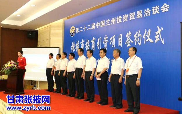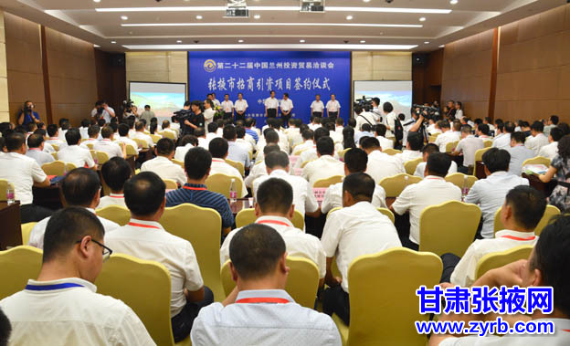 7月7日下午,第22届“兰洽会”张掖市招商引资项目签约仪式在甘肃国际会议中心举行,共签约项目206项、签约资金 655.6亿元。省人大常委会副主任周多明、省政协副主席李沛文出席并见证签约。市委书记毛生武致辞,市委副书记、市长黄泽元主持,市上领导康清、钱英文、王方太、赵学忠、王刚及市委、市政府、市政协秘书长出席签约仪式。