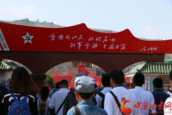 9月20日,“长征路上奔小康”网络媒体“走转改”大型媒体采访团在中央网信办、甘肃省委网信办的组织下,向会师纪念塔敬献花篮。他们走进会宁县周湾村,来自全国60家媒体的记者们走访村民,探寻这片红色故土上的故事。