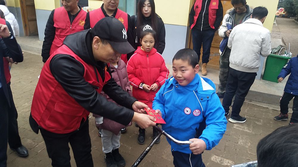 当天,爱心志愿者团队经过3个多小时的路途颠簸,11点10分,当车队到达刘咀小学时,热情朴实的老师和同学们早早在校园里等候,孩子们用最纯真的笑容将叔叔阿姨们迎进校园。孩子们的爱流露在笑容里,孩子们的期盼在渴望的眼神中,他们围在叔叔阿姨周围及腼腆又可爱。当爱心志愿者看见穿着单薄的孩子们冻得发紫的小手和脸蛋上红红的耳团时,爱心志愿者既感动又心疼,大家纷纷给孩子们搓着小手。