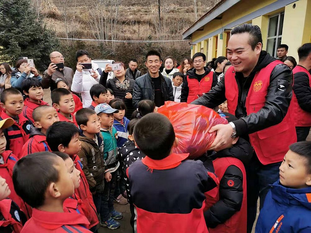 中国甘肃在线会宁讯 (赵小春 报道)初冬的会宁大地草木枯竭,树叶变黄,寒风在山梁上毫无遮拦的吹着,出行的人们裹紧了身上的棉衣,在家忙绿的农民也闲不下来,或收拾遗留在田间的玉米秸秆、或忙着打碾粮食、或接送孩子上学.......。11月16日,位于大山深处的会宁县杨崖集镇刘咀小学欢声笑语、热闹非凡、暖意融融。学校师生迎来了一批特殊的客人,一个来自兰州的爱心志愿者团队让这个山村小学的师生感受到了寒冬里的温暖。