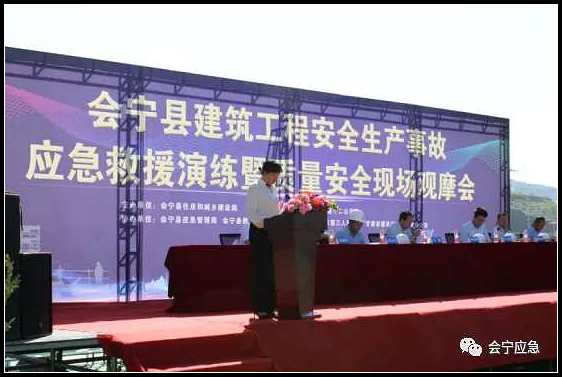 郭俊英在讲话中说,组织开展全县建筑施工领域生产安全事故应急救援演练及质量安全观摩会,主要目的是深入贯彻落实习近平总书记关于安全生产工作的重要指示精神和国家、省市县相关工作要求,扎实开展“安全生产月”和“安全生产会宁行”系列活动,有序推进安全生产专项整治三年行动,全县各级各部门和建筑施工企业要切实强化责任意识,加强组织领导,强化应急救援预案演练,推进应急管理体系和应急队伍建设,防微杜渐,警钟长鸣,努力把事故消灭在萌芽状态,确保全县安全生产形势持续稳定好转。同时要切实履行环保社会责任,严格执行建筑工程文明施