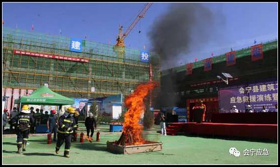 活动在会宁县科创中学项目建筑工地组织开展,分为消防知识和急救常识现场培训、应急演练(火灾、物体打击、高处坠落、触电事故)和质量安全观摩三个部分,县住建局、县应急管理局、县教育局、县消防救援大队,白银市第三人民医院主要负责人及工作人员,全县在建项目建设、施工、监理单位主要负责人共计300余人参加了活动并观摩了科创中学项目工程质量样板引路及施工现场安全生产情况。。