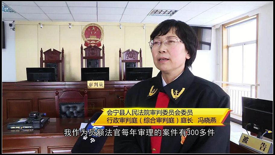 会宁县人民法院审判委员会委员、行政审判庭(综合审判庭)庭长 冯晓燕:我们法院司法改革以后,我作为员额法官每年审理的案件有300多件,除过两个双休日平均每天是1.5件。新的民法典马上就要实施了,我要好好学习,提升自己的业务技能,更好的服务审判工作。让老百姓在我所审理的案件中都能够感受到公平正义,让他们增强法律意识,维护社会的稳定。