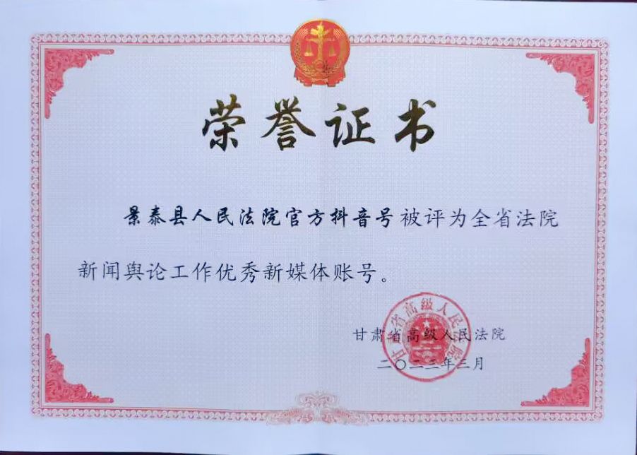 4月22日,从甘肃省法官学院举办的全省法院新闻舆论工作培训班开班仪式上传来喜报,景泰县人民法院官方抖音号被评为“全省法院新闻舆论工作优秀新媒体账户”,祁常鑫同志被评为“全省法院新闻舆论工作先进个人”