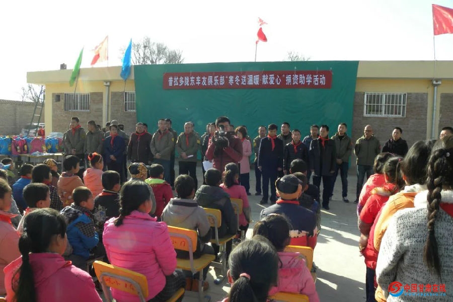 中国甘肃在线讯(记者:张宏)爱心献他人,真情满校园。12月1日上午10时30分,甘肃省普拉多陇东车友俱乐部一行20多人来到镇原县屯字镇曹路村岘子小学进行了主题为“寒冬送温暖.献爱心”捐资助学活动,为岘子小学的孩子们献上了爱心。