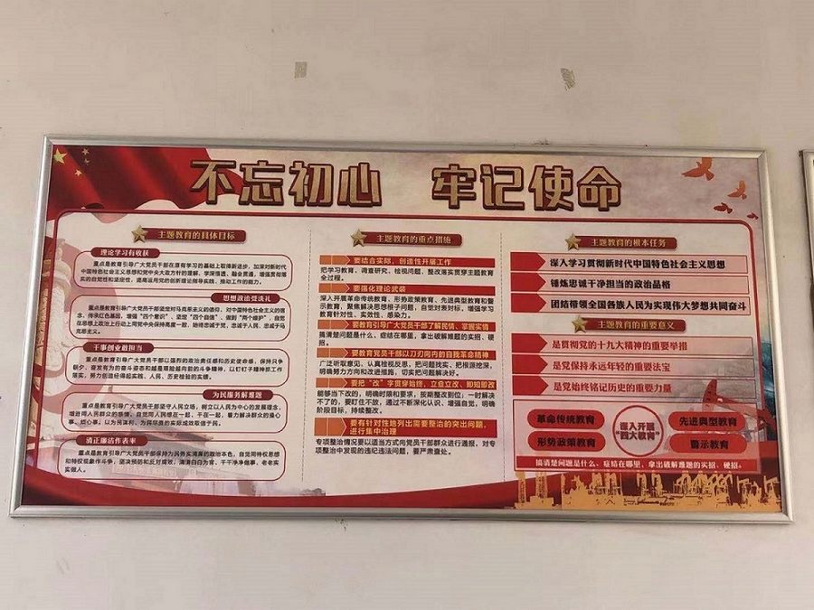 为认真开展好“不忘初心 牢记使命”主题教育活动,渭源大队在精心选定内容的基础上制作了宣传展板条幅等,切实营造良好的主题教育学习氛围。宣传展板内容主要涵盖开展“不忘初心 牢记使命”主题教育活动的具体目标、重要意义、重点措施、基本任务,明确指引了全队人员在此项活动中亟需加大对初心使命理论知识的学习储备,勇于担当使命职责,激励全员践行“对党忠诚、纪律严明、赴汤蹈火、竭诚为民”训词精神。在日常工作、生活时都能时刻。