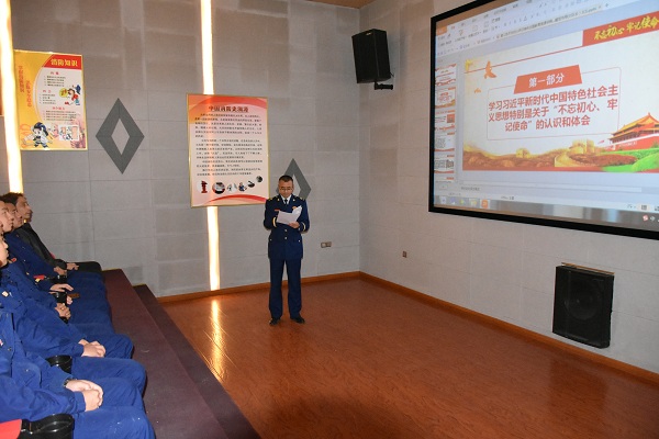 11月8日,大队长左鹏飞结合前期学习研讨、问题检视、调查研究和问题整改的心得收获,紧紧围绕“守初心、担使命、找差距、抓落实”总要求,从自身岗位职责出发,带头走上讲台,讲授专题党课,与党员指战员分享悟初心、担使命的感悟。授课中,大队长左鹏飞立足“不忘初心、牢记使命”主题教育目标任务,结合前期党支部调研和自身学习体会,以一名共产党人的初心视角,生动讲述了中国共产党人的初心和使命,深刻阐述了习近平新时代中国特色社会主义思想的丰富内涵以及此次主题教育的必然性和重要性,为指战员讲授了一堂理论与实际相结合、观点鲜明、内容丰富的专题党课,同时结合工作实际和学习体会,与大家进行深入交流研讨,教育引导全体指战员立足改革大势、忠诚履职尽责,在消防救援工作的具体实践中践行初心、勇担使命,培树全体人员许党报国的坚定意志。