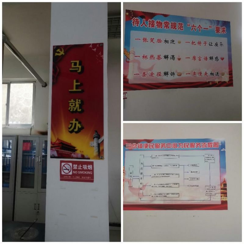 二是重点提升便民服务水平。将“待人接物常规范”作为便民服务水平提升的根本目标,在便民服务大厅醒目位置设置“六个一”标准提示语和便民服务工作流程图,时刻提醒工作人员遵守待人接物的各项具体要求,并按程序规范做好为民服务。改善提升便民服务大厅等待区的硬件条件,在等待区为办事的群众配备了新的沙发、茶几、阅报栏、饮水机、洗手池、电子查询台等设施。镇党委、镇纪委及时跟进,对在为民服务过程中存在“门难进、脸难看、事难办”现象的人员及时进行批评教育,对造成不良影响的工作人员适时启动程序跟踪问效,极大地扭转了群众对乡镇机关、乡镇干部的固有看法,干群关系得到进一步凝聚和强化。
