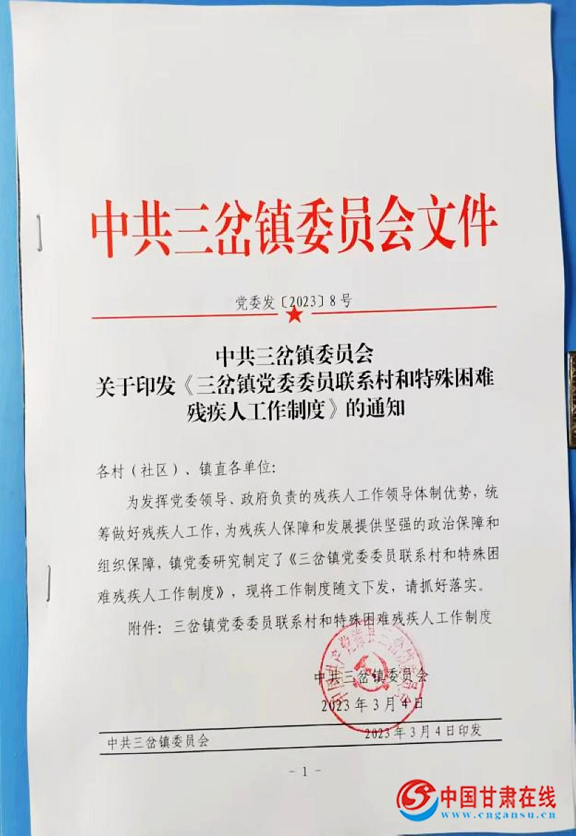 中国甘肃在线漳县讯 定西市漳县三岔镇认真贯彻落实各级关心关爱残疾人政策,采取“三实”举措,深化残疾人服务工作,取得了良好的成效。