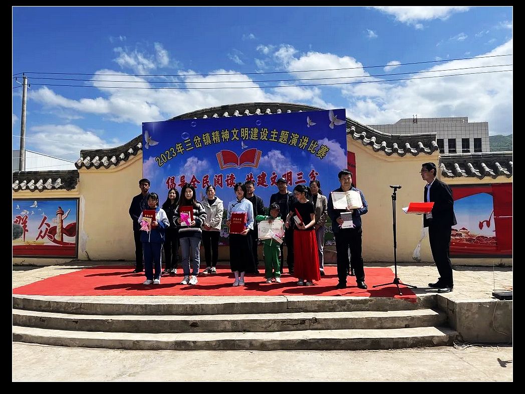 开展一次主题演讲。组织举办“精神文明建设及移风易俗”征文颁奖暨“倡导全民阅读·共建文明三岔”2023年精神文明建设主题演讲比赛。以群众喜闻乐见的形式,加强典型示范,推进移风易俗,倡树文明新风。