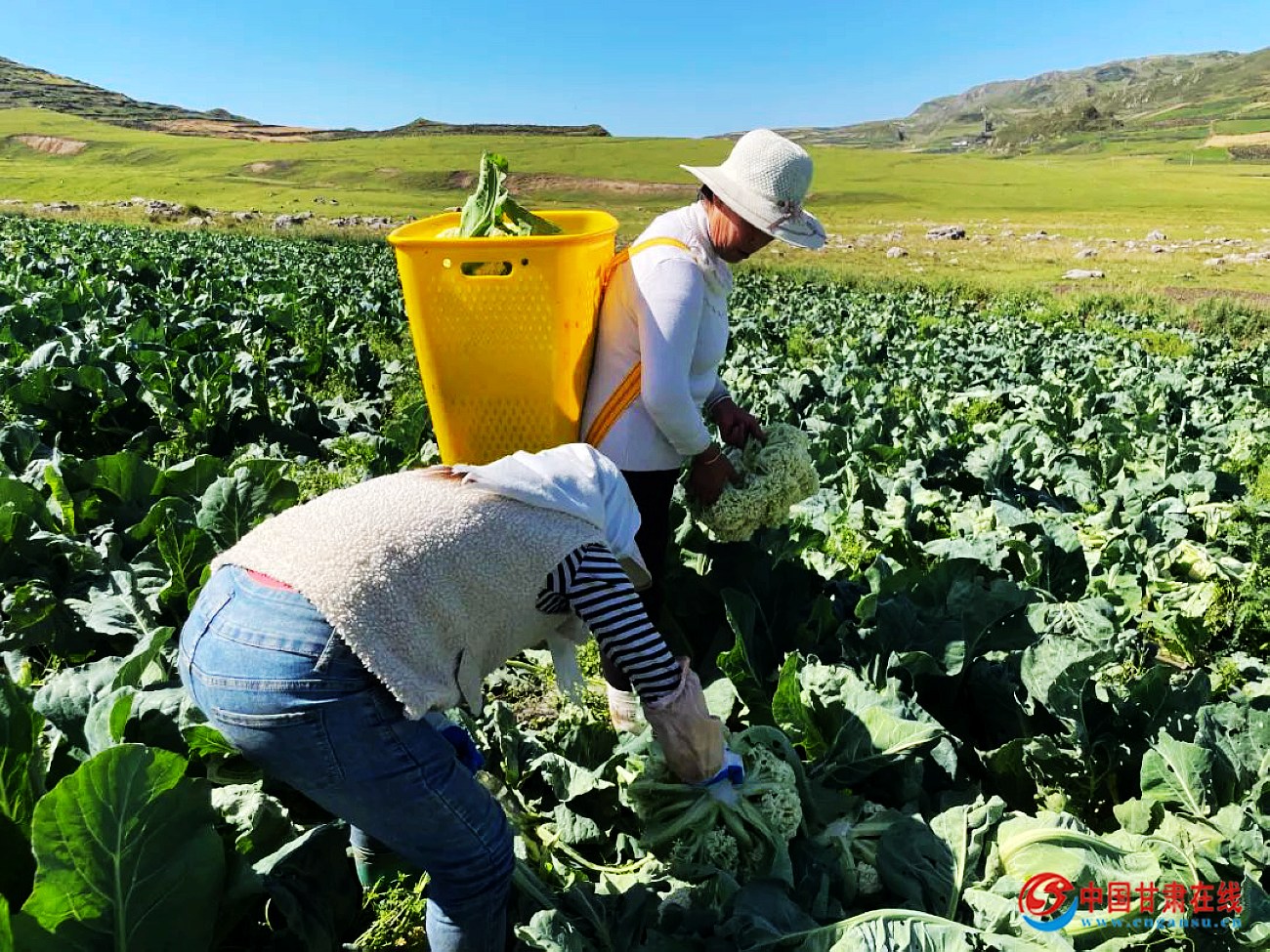 中国甘肃在线漳县讯 走进漳县东泉乡黄河村高原夏菜种植基地,大朵大朵绿油油的芹菜接天连地,一颗颗长势均匀的散花菜害羞地藏在叶片丛中,大家正在田间辛勤忙碌,她们有的用菜刀麻利地铲下菜朵、修理菜叶;有的用背篓或菜筐将整理好的菜搬运到农用车上;有的则站在车厢里将递上来的蔬菜码的整整齐齐……田间地头,一派人勤地丰的秋收画卷跃然眼前。