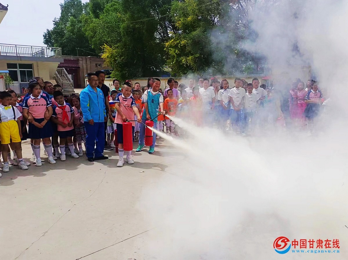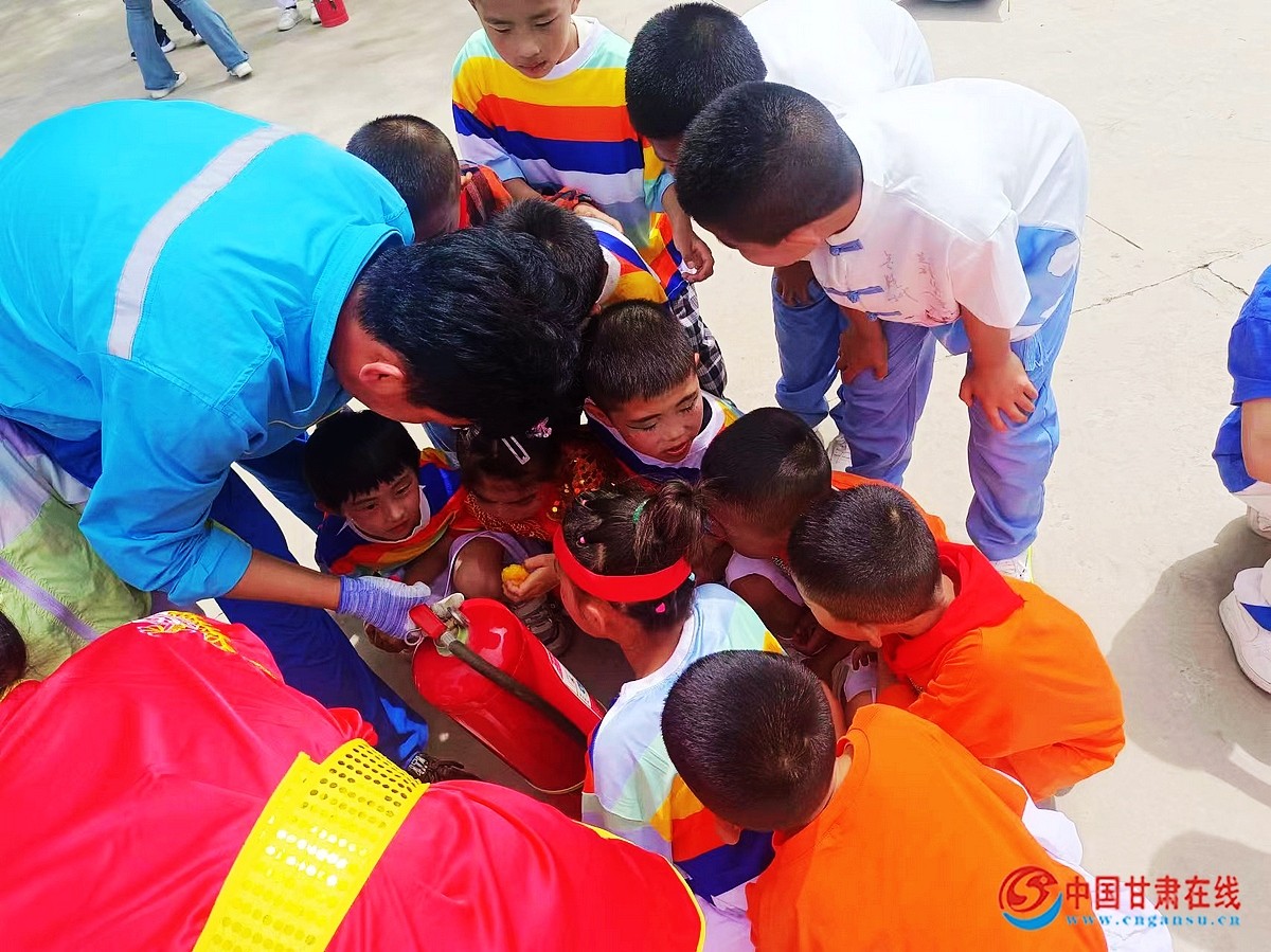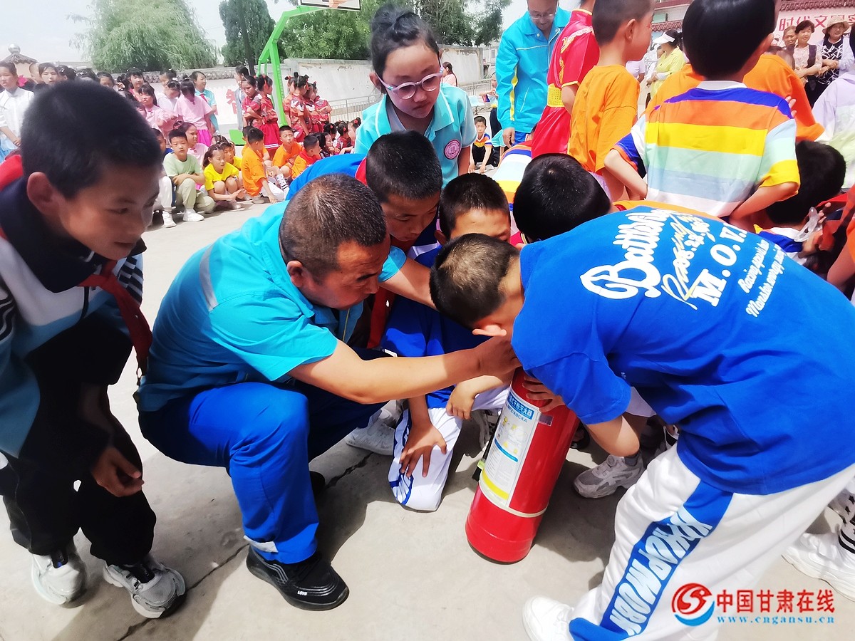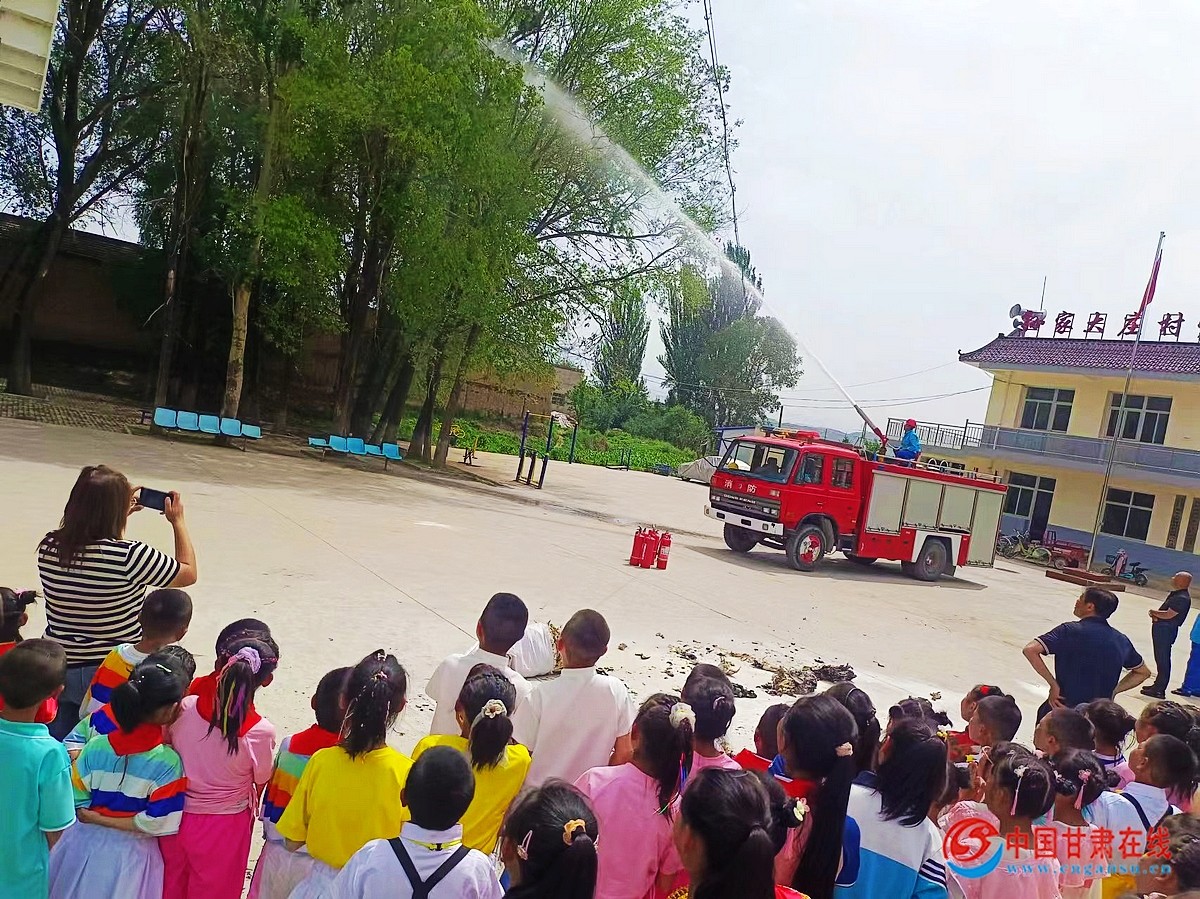 中国甘肃在线临洮讯 5月30日,中国石油甘肃销售临洮油库组织青年警消队员在第74个国际六一儿童节来临之际,走进临洮县八里铺镇孙家大庄村部小学,与孩子们一起开展了一次别开生面的消防知识“进校园”,安全防护伴“童”行宣传活动。