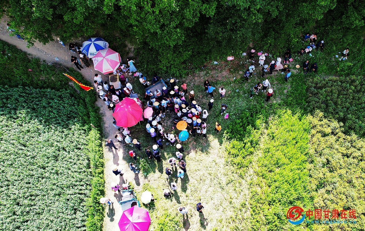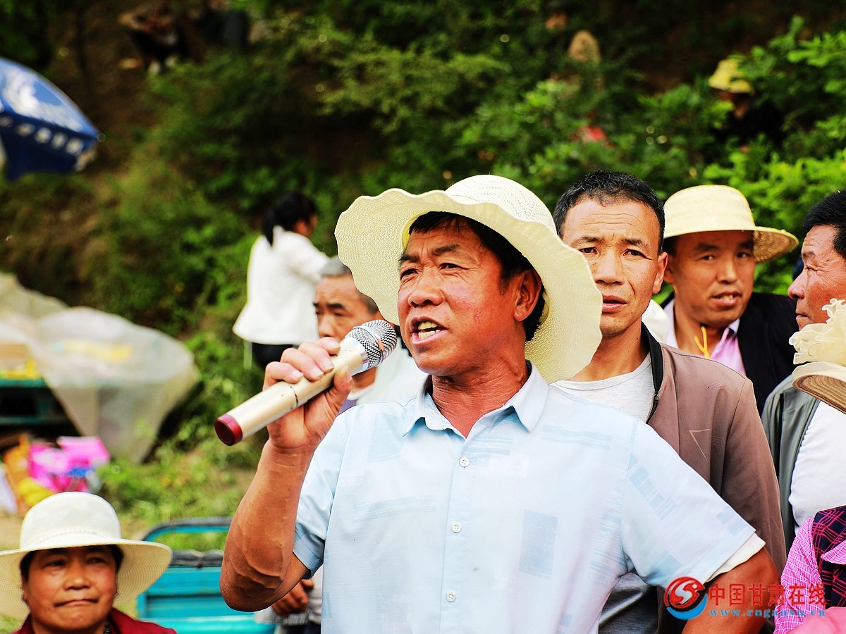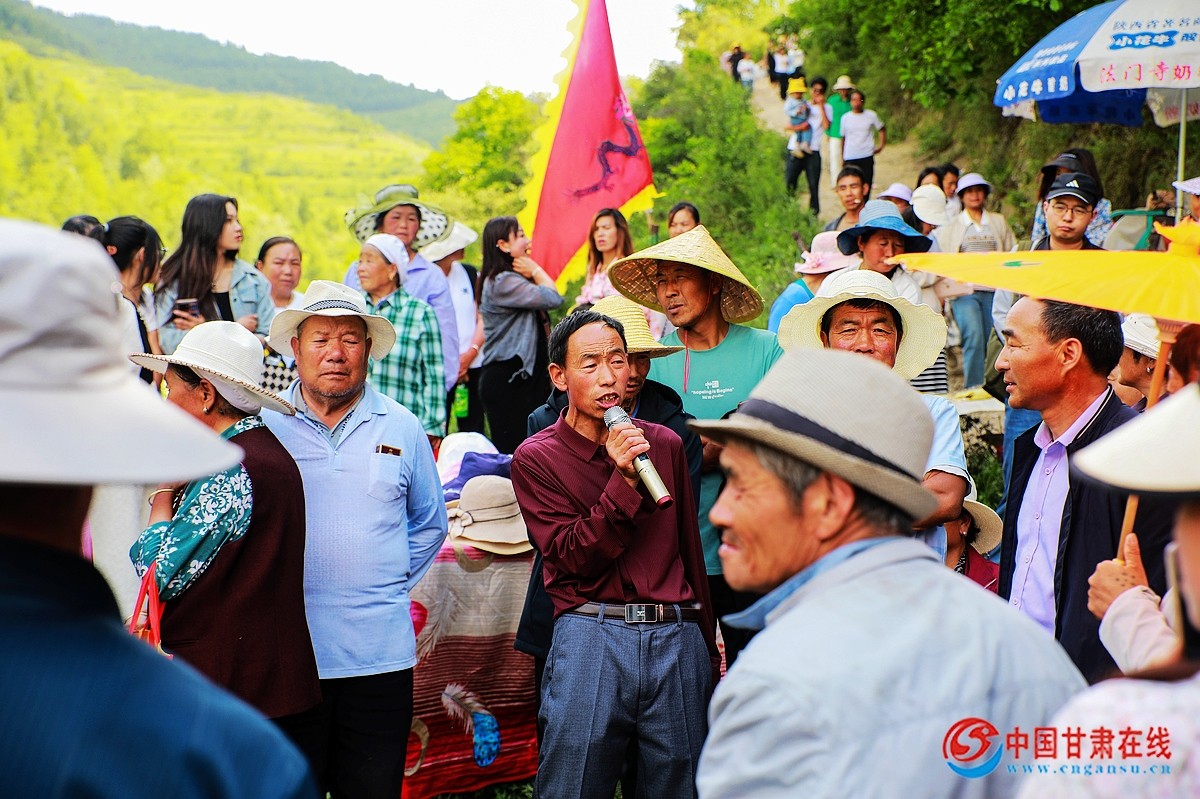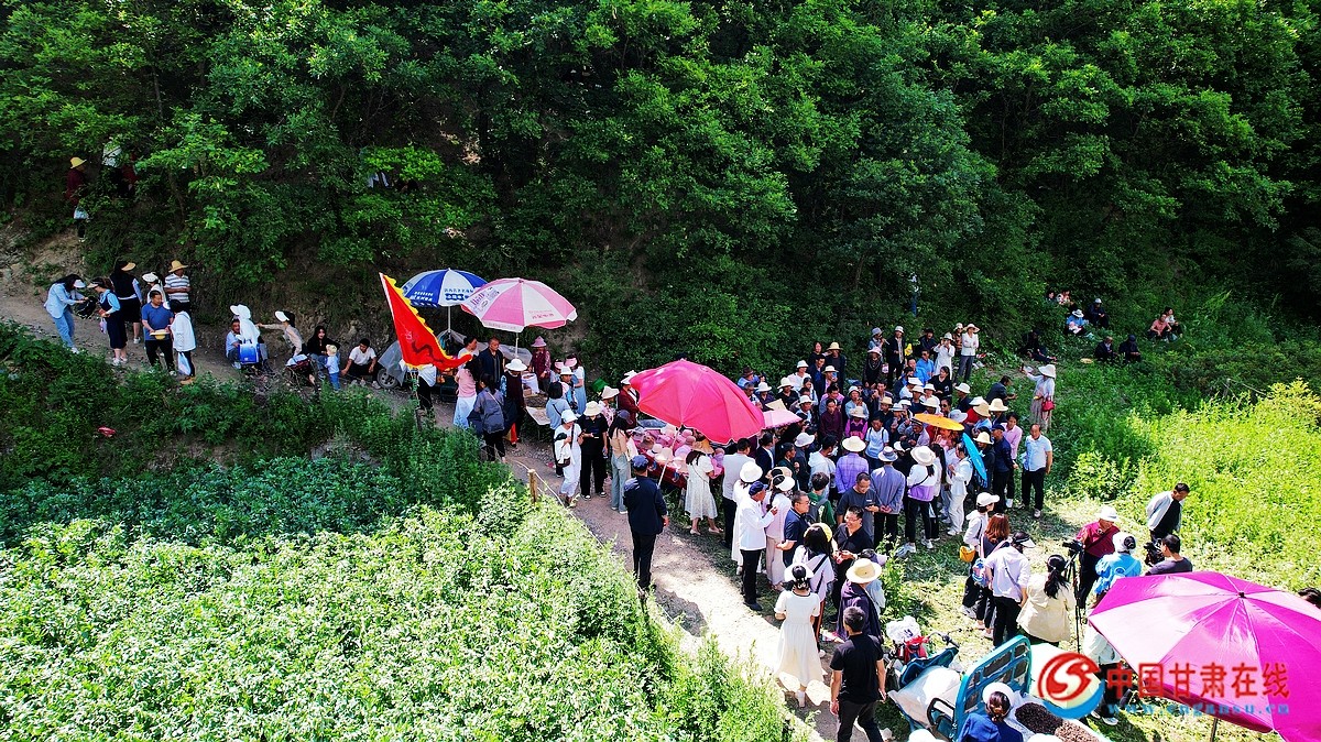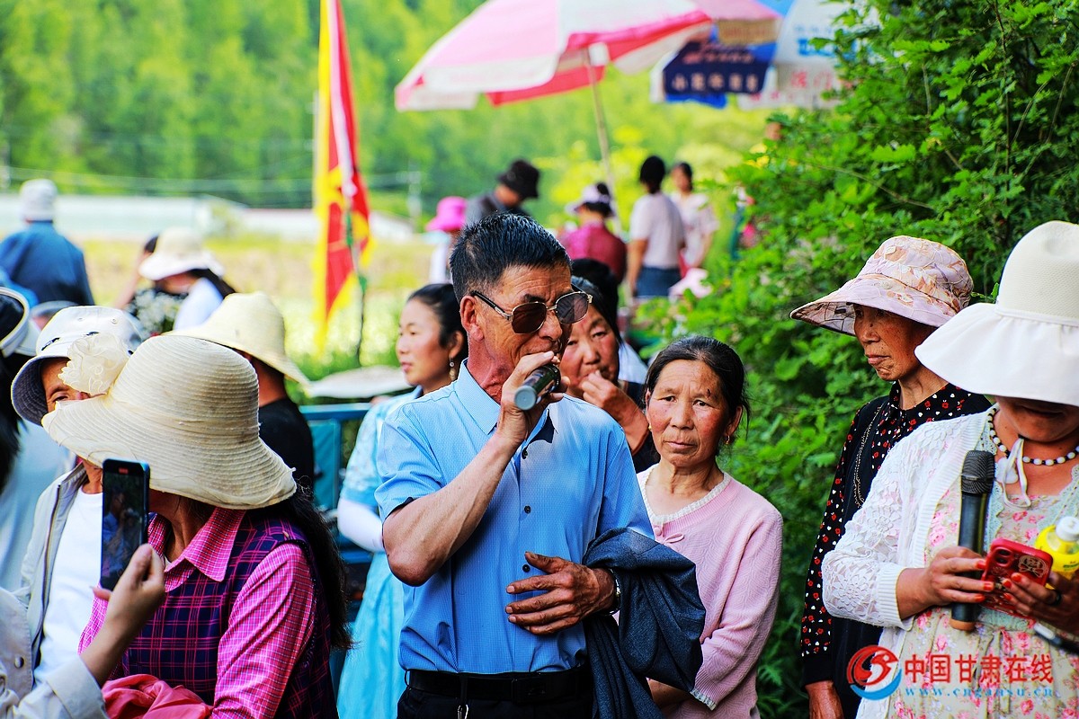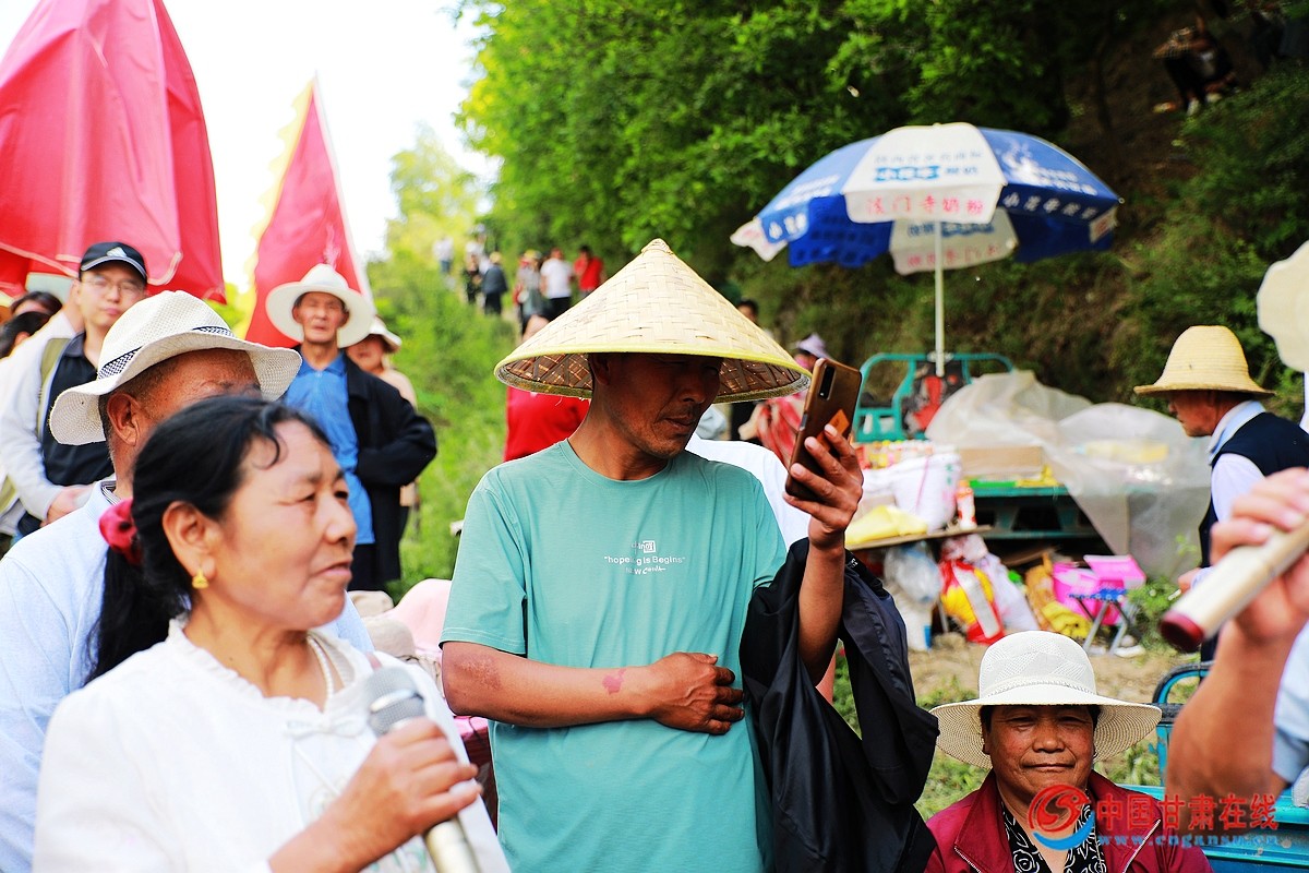 中国甘肃在线岷县讯 2024年6月19日,在甘肃省定西市岷县十里镇大沟寨的花儿会现场,来自各地的民间花儿歌手和花儿爱好者汇聚山林间赛唱“洮岷花儿”,漫山遍野成了“花儿”的海洋。