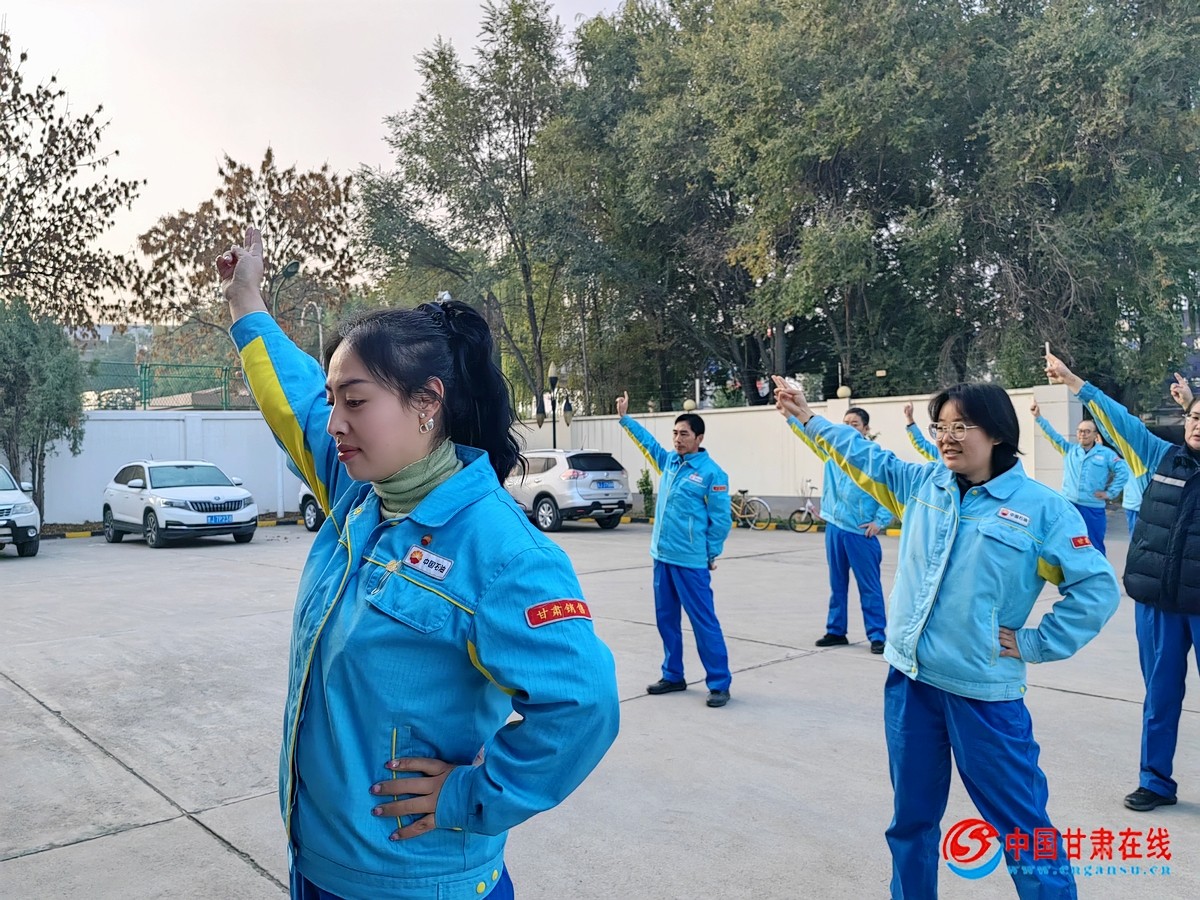 每天交接班晨会后,全员工积极参与迅速集合,当工间操的音乐响起,原本安静的场地瞬间热闹起来。广场舞的旋律充满活力,能驱散工作带来的疲惫。抬手、转体、踢腿,动作虽不似专业舞者那般精湛,但每一个姿态都饱含热情。身体在有节奏的运动中舒展开来,长期因工作而紧绷的肌肉得到了舒缓,久坐或久站带来的不适也在舞步中渐渐减轻。
