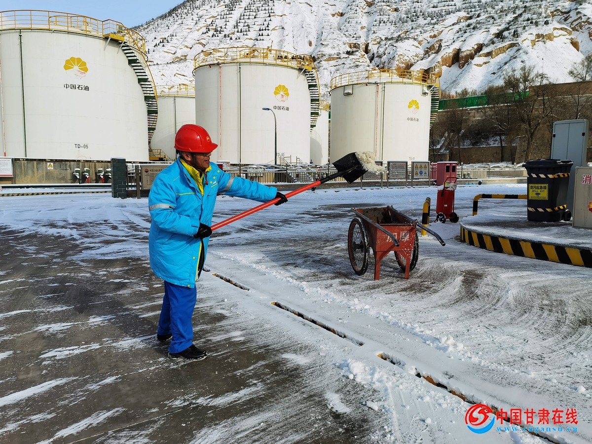 中国甘肃在线定西讯 2024年首场强降雪突袭而至,储运分公司定西油库迅速切换至应急状态,全员闻雪而动,迅速投身到扫雪除冰、保障油品供应的攻坚行动中,以实际行动筑牢安全坚实防线。