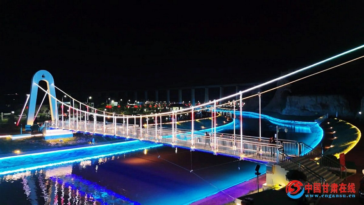 夜晚漫步在渭河沿岸的生态廊道上,灯光璀璨、夜色阑珊,两岸风景交融,展现出一张时尚动感、韵味独特的“渭源名片”。