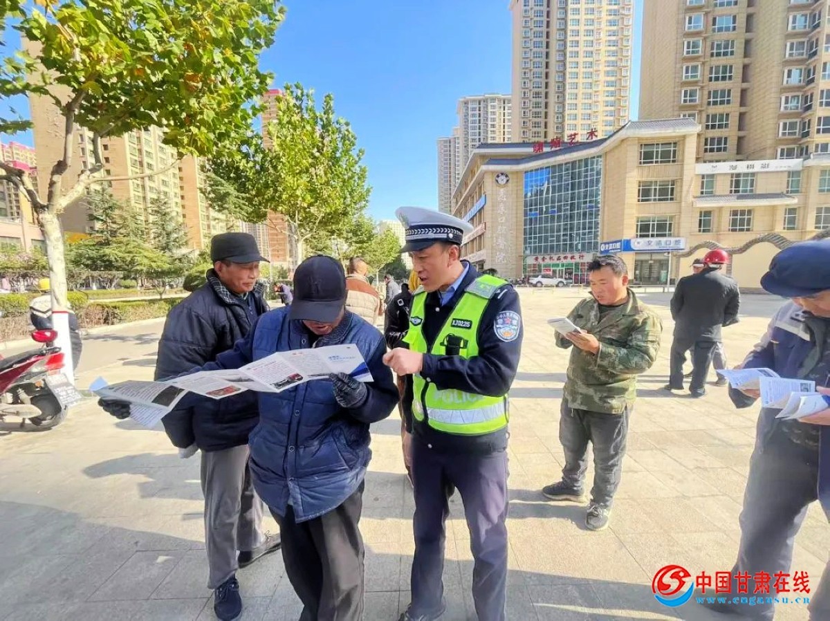 中国甘肃在线陇西讯(通讯员 刘建强)为进一步做好冬季道路交通安全管理工作,不断增强辖区进城务工人员的交通安全意识,提高交通安全防范能力。11月6日,陇西县公安局交警大队宣传民警深入露天劳务市场,对进城务工人员积极开展交通安全宣传活动。活动中