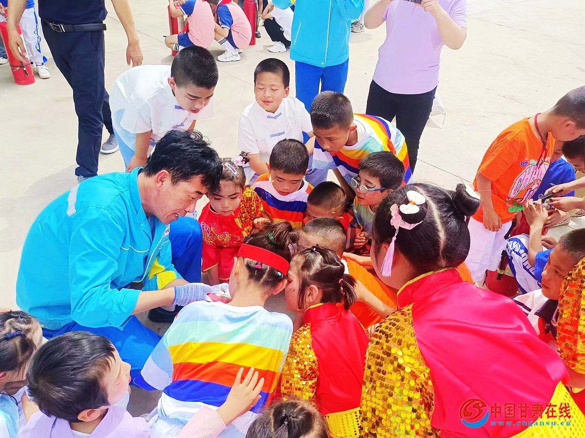 中国甘肃在线临洮讯 5月30日,中国石油甘肃销售临洮油库组织青年警消队员在第74个国际六一儿童节来临之际,走进临洮县八里铺镇孙家大庄村部小学,与孩子们一起开展了一次别开生面的消防知识“进校园”,安全防护伴“童”行宣传活动。活动伊始,油库警消