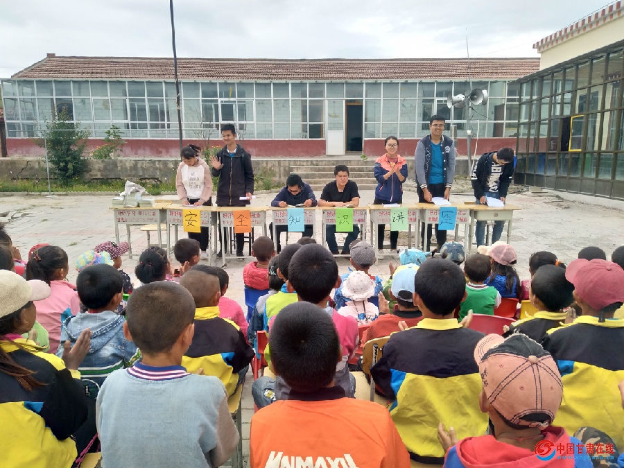 为提高学生安全意识,创建平安校园,8月20日,山东理工大学小水滴公益联盟赴甘肃社会实践团于卡加小学举办安全知识讲座。实践团特邀夏河县安全生产监督管理局王炜、吉塔才让担任此次讲座嘉宾,6名实践团队员和卡加小学全体学生参加此次讲座。