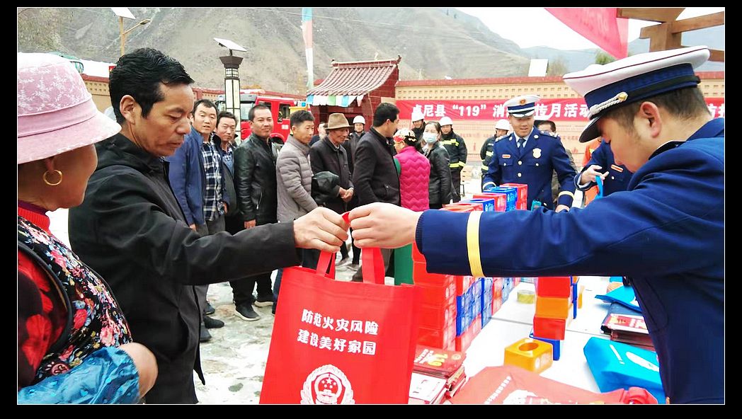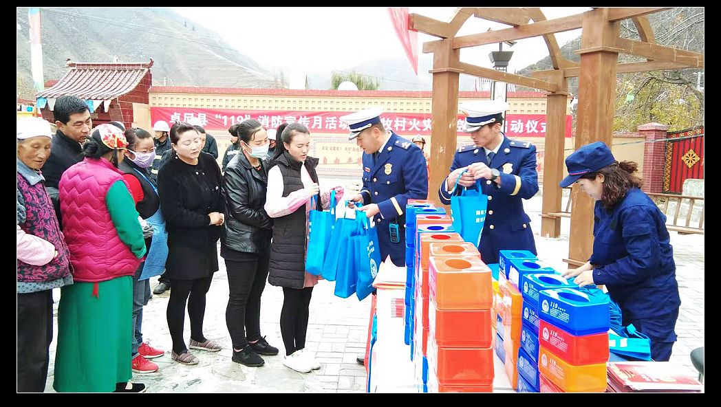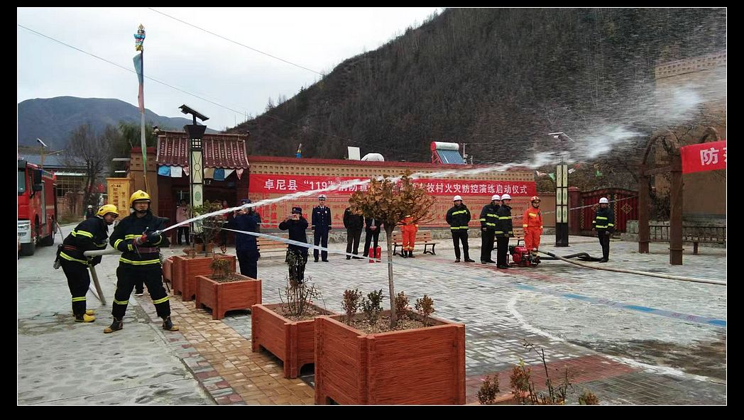 中国甘肃在线甘南讯 11月8日上午,在习近平总书记为国家综合性消防救援队伍授旗并致训词一周年活动开展之时,在全国消防安全宣传教育日来临之际,在卓尼县木耳镇力赛村来自全县15个乡镇政府的消防专干和力赛村村民参加了全县2019年消防宣传月活动暨农牧村火灾防控演练启动仪式。