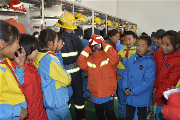 中国甘肃在线甘南讯,“你拍一,我拍二,生命安全数第一;你拍二,我拍二,学习消防在一块儿;你拍三,我拍三,消防站里去参观……”119宣传月来临之际,碌曲县城关小学百余名萌娃,唱着儿歌,迈着整齐的步伐来到碌曲县消防救援大队,开启一堂别开生面的消防“盛宴”。