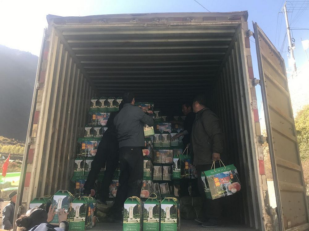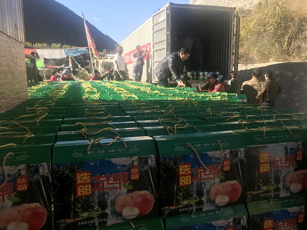 村民赛闹说:“原以为,今年的苹果只能留着自己吃了,不曾想苹果却走出了大山销往天津,愿天津市民的生活像苹果一样香甜甜,也感谢党和政府为我们做了这么多”。说着,他双手竖起了大拇指。