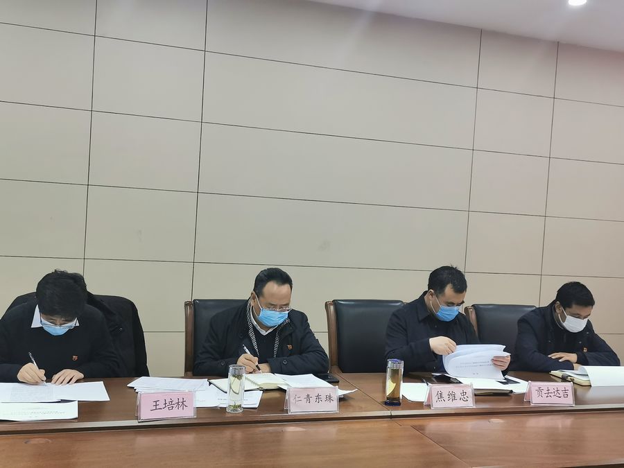 甘南讯 记者香巴草)2020年2月14日,甘南藏族自治州政府副州长、县委书记、迭部县新冠肺炎疫情防控领导小组组长仁青东珠主持召开迭部县新冠肺炎疫情防控工作第十一次研判会议,县委副书记、县长、县疫情防控领导小组组长焦维忠,在主会场出席会议。会议传达学习了中共甘肃省委办公厅、省联防联控领导小组办公室《疫情防控要情》第8期、第9期和州新冠肺炎疫情防控领导小组第14次会议精神,现场讲解了消杀操作规范,通报了近期督查工作情况,听取了物资保障组工作汇报,安排部署下一步联防联控各项工作。
