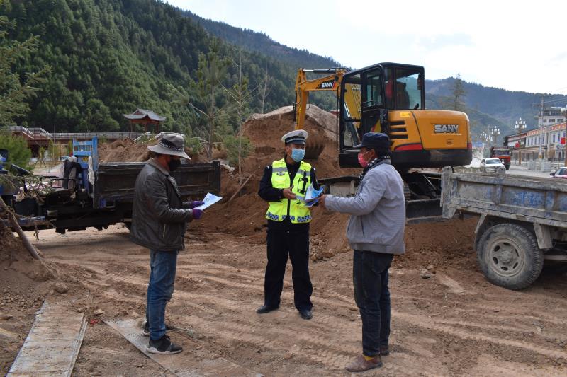 中国甘肃在线讯(通讯员:王小强)为确保辖区企业疫情防控、复工复产安全稳定,遏制各类交通事故的发生,甘肃省迭部县公安局交警大队组织民警深入辖区施工企业进行疫情期间复工复产交通安全工作大检查,开展道路交通安全知识宣传活动。