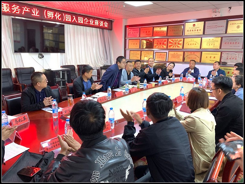 此次座谈会的目的是商议入园企业管理规则,签订《入园协议》,共同探讨人力资源发展的趋势与商机。