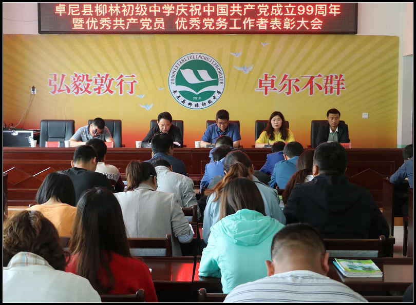 召开七一表彰大会,庆祝建党99华诞。下午16:00时,在学校五楼会议室召开了“庆祝建党99周年暨优秀党员、优秀党务工作者表彰大会”,校长侯志海主持会议,党总支书记杜育民作了讲话,学校领导班子、全体党员参加了会议。会议表彰了8名优秀共产党员,2名优秀党务工作者。会议深刻阐述了中国共产党的辉煌历程,激励全体党员不忘为师初心,牢记育人使命,时刻以一名合格的共产党员来要求自己,在全体师生中树立模范和榜样。