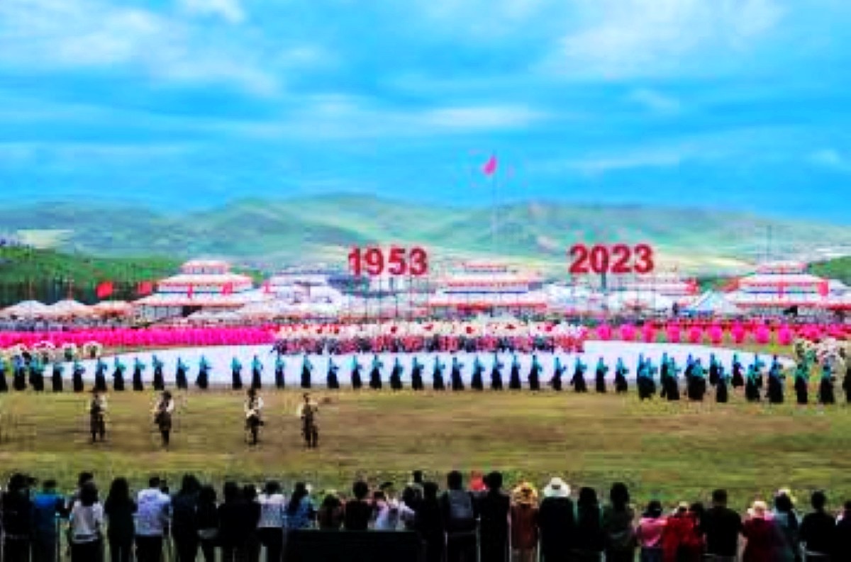 庆祝大会结束后,与会领导和嘉宾观看了以“感恩奋进新时代 同心筑梦新征程”为主题的甘南藏族自治州成立70周年庆祝大会文艺演出。