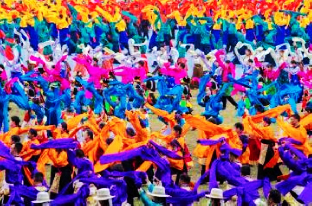 精彩的文艺表演将当周草原妆扮成了欢乐的海洋,各族群众演员精神饱满,特色民族服饰靓丽多彩,地域特色与现代艺术结合的舞蹈绚丽多姿。演出分为时代旋律、幸福交响、红色凯歌、生态天籁、梦想奏鸣、未来乐章等六个篇章,各县市代表队演员用舞蹈充分展示了各地的民俗民风和文化特色,展示了全州欣欣向荣的繁荣景象,充分表达了全州各族儿女喜迎建州70周年的喜悦心情。最后,文艺表演在万人锅庄舞中圆满落下帷幕。