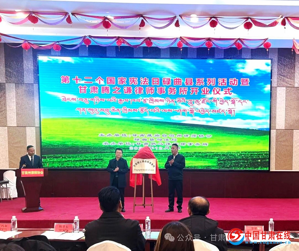 中国甘肃在线碌曲讯 2025年12月4日,第十二个国家宪法日的阳光洒满尕海草原,甘肃腾之谦律师事务所在甘南州碌曲县举行盛大开业庆典,为这座高原小城的法治建设注入新活力。行业翘楚、政企代表齐聚一堂,共同见证碌曲公共法律服务体系的重要里程碑。