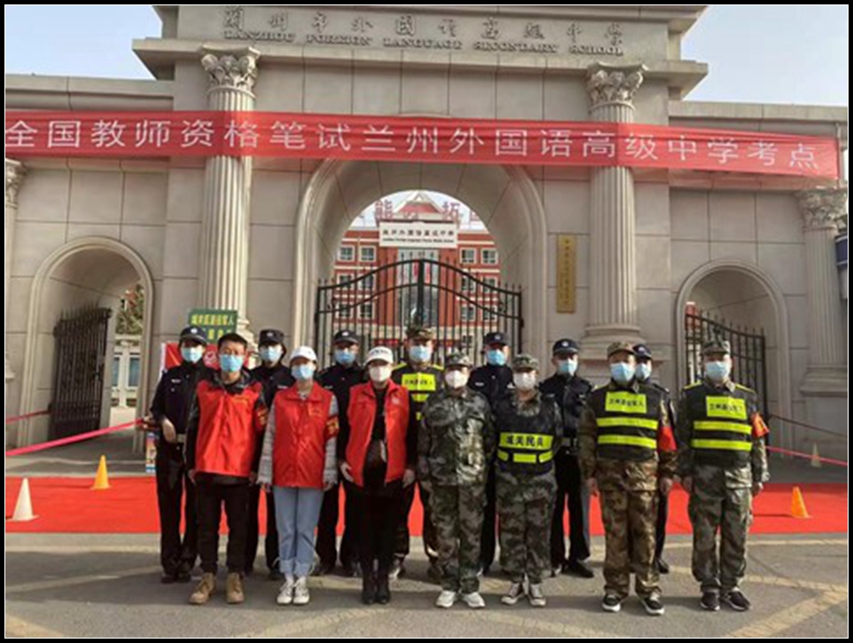 中国甘肃在线兰州讯 为保障疫情期间教师资格考试顺利开展,切实保障考生生命安全和考场秩序,根据区人武部指示,雁南街道由街道人武部部长带队,组织民兵及退役军人于3月12日上午7点20分就位,配合交警、派出所执行考场警戒执勤任务。街道民兵及退役